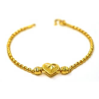 สร้อยข้อมือ ทองคำ 1 บาท ลายเม็ดข้าวโพด ระย้าหัวใจ