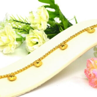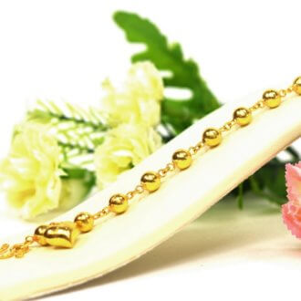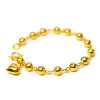 สร้อยข้อมือ ทองคำ 2 สลึง ลายลูกประคำ ห้อยระย้าหัวใจ