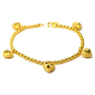 สร้อยข้อมือ ทองคำ 2 สลึง ลายอิตาลีคั่นโอ่งระย้าหัวใจ