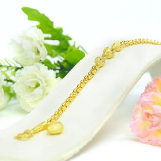 สร้อยข้อมือ ทองคำ 1 บาท ลายมูนเหลือบ ระย้าหัวใจจิกเพชรตัดลาย