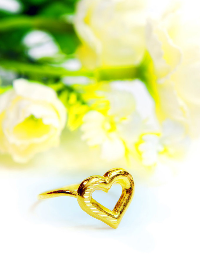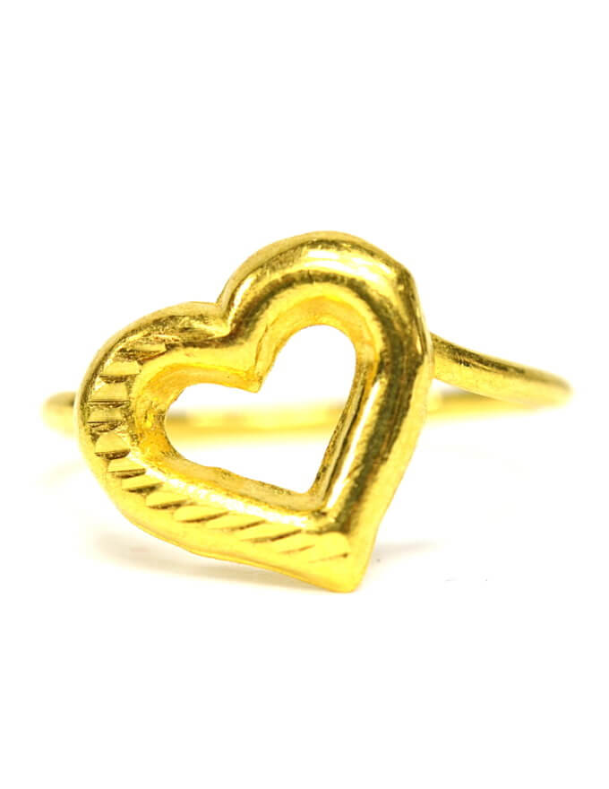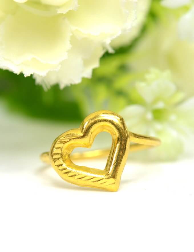 ขนาดเล็กน่ารัก เหมาะกับสวมใส่ในชีวิตประจำ วันแหวน ทองคำแท้ ลายหัวใจตัดลายครึ่งดวง